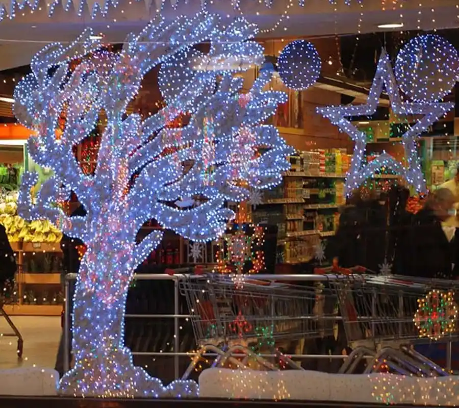 Işıklı ağaç dekor imalatı konusunda uzman ekibimizle; dekoratif yapay ağaç tasarımından, büyük üç boyutlu çam ağacı uygulamalarına kadar her aşamada yanınızdayız.