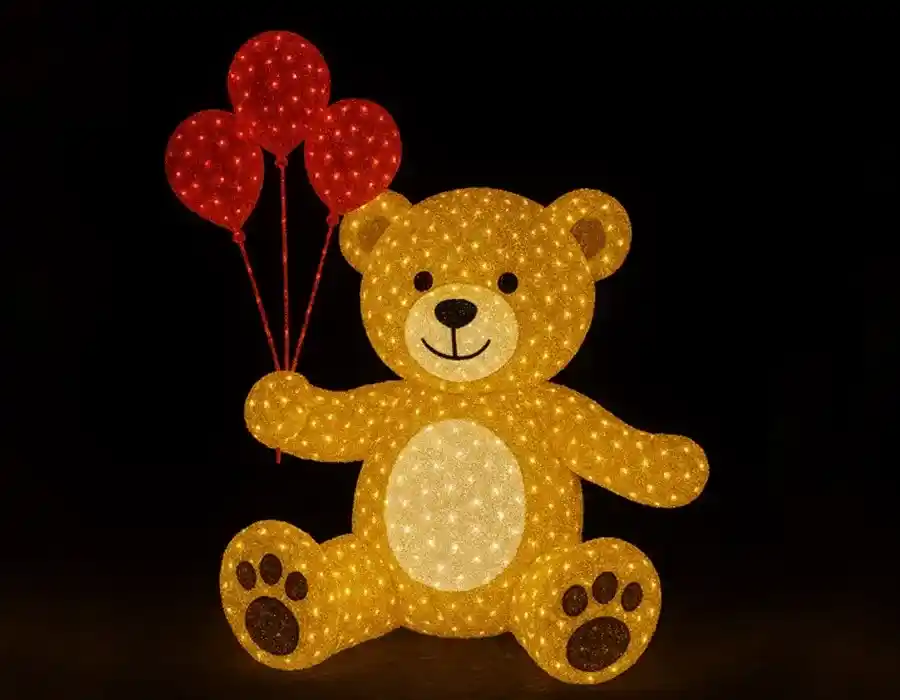 İmalatını yaptığımız LED ayıcık dekoru, uzun ömürlü alüminyum karkas yapısı ve enerji tasarrufu sağlayan modern aydınlatma teknolojisiyle öne çıkar. IP65 ve IP68 su geçirmezlik standartlarına sahip olan bu figürler; şehir meydanları gibi alanlarda masalsı bir atmosfer yaratır.